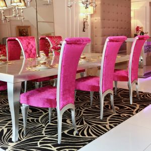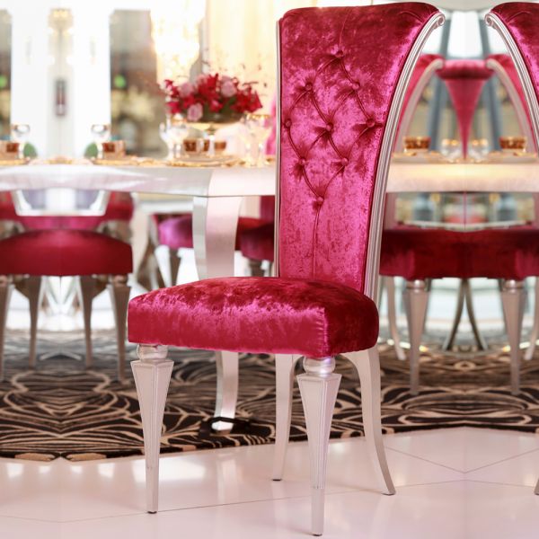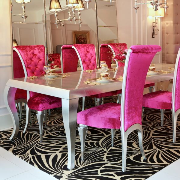 The High End Silver Leaf Designer Italian Dining Set is perfect for intimate evening suppers. A gorgeous dining set that offers an outstanding statement of style and comfort, providing the ultimate sophisticated dining experience indeed. A stylish beech w