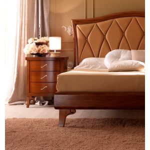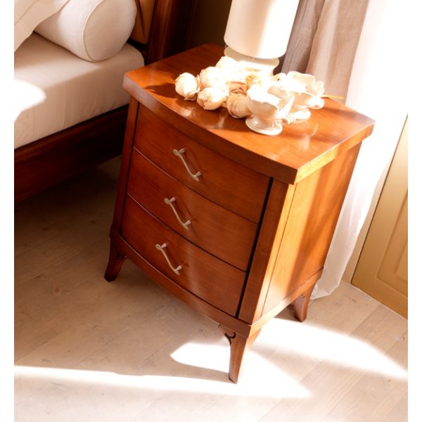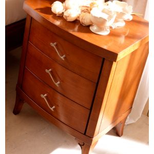 French luxurious cherry wood set of 2 bedside tables made to the highest standards from solid carved cherry wood and then lacquered with modern wrought iron handles finished in silver leaf.