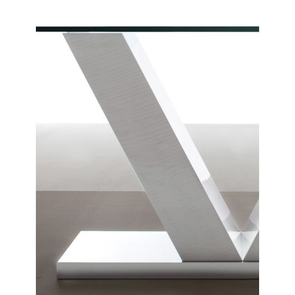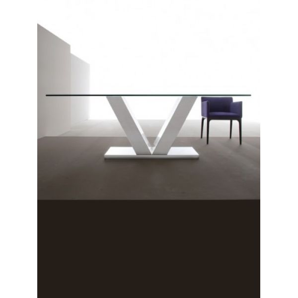 The Luxury Italian white V dining table with a glass top. Made to world class standards. Available also with a black and beech base in both high gloss and matt finishes