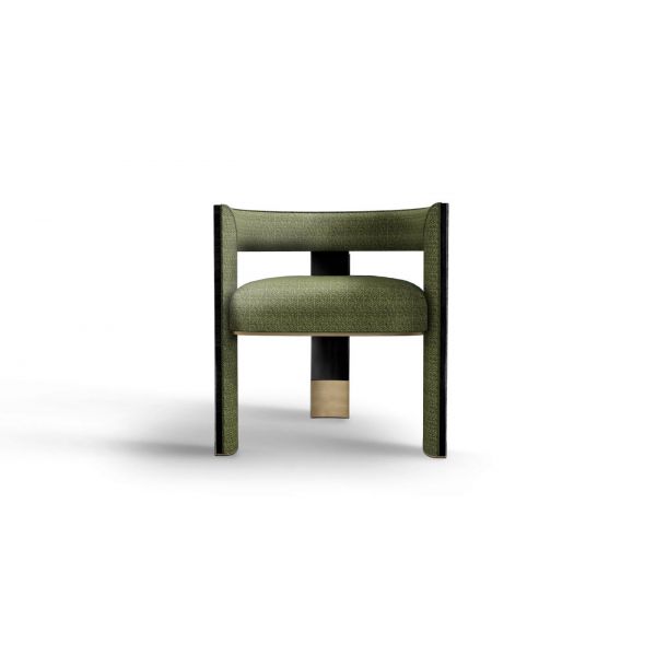 Structure: Black walnut with matte varnish Uphostery: Linen Details: Aged brushed brass with matte varnish